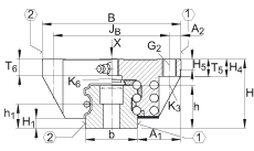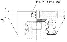 - 對于從上面安裝: 最大的中間螺紋孔的螺紋深度 T6 + 3 mm