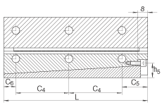 - 楔形塊的高度取決于楔形塊的長度,它決定了不同類型的導軌截面高度 H 和 h2 。 H 的調整范圍:-0,5到+0,3 mm