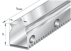 - 單根導軌的最大長度;更長的導軌可以分成幾段供貨,并且相應地標注。 尺寸為25的帶齒導軌的最大長度如下: 1500 mm 960 mm 540 mm 這些長度的導軌端部被斜著切割,可以直接用于導軌的連接。